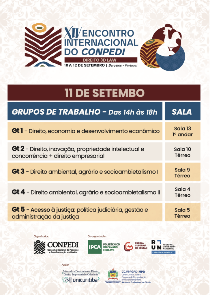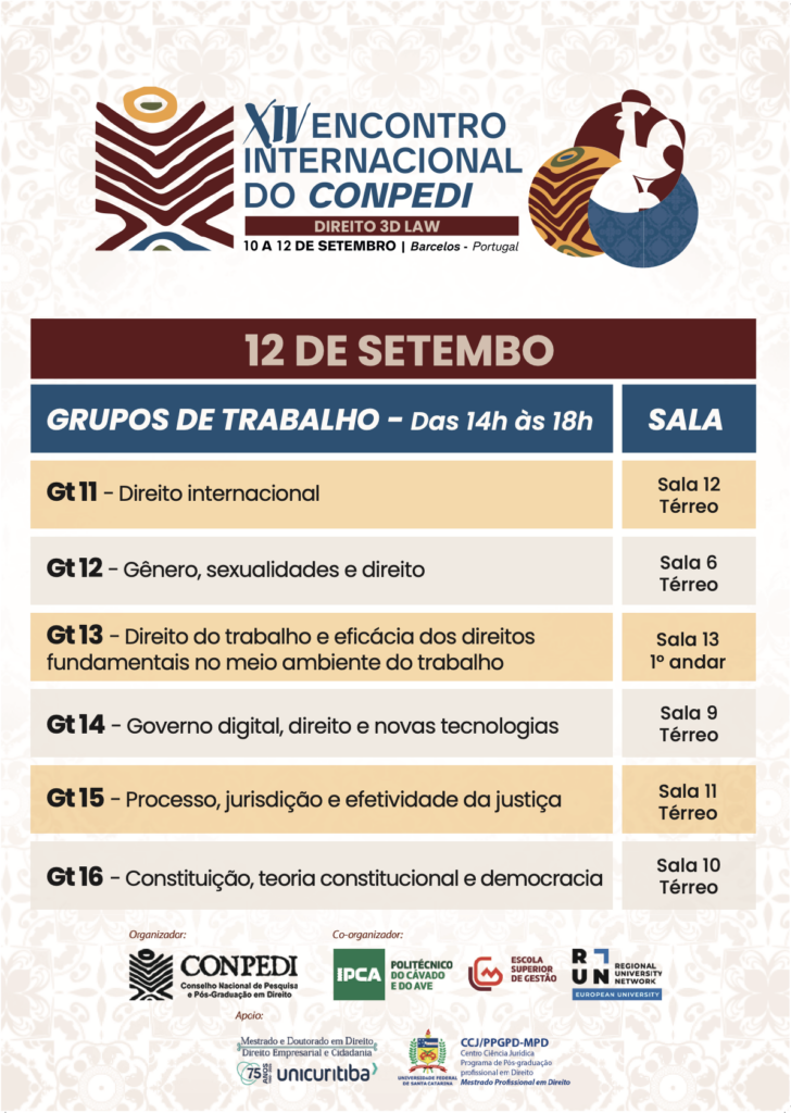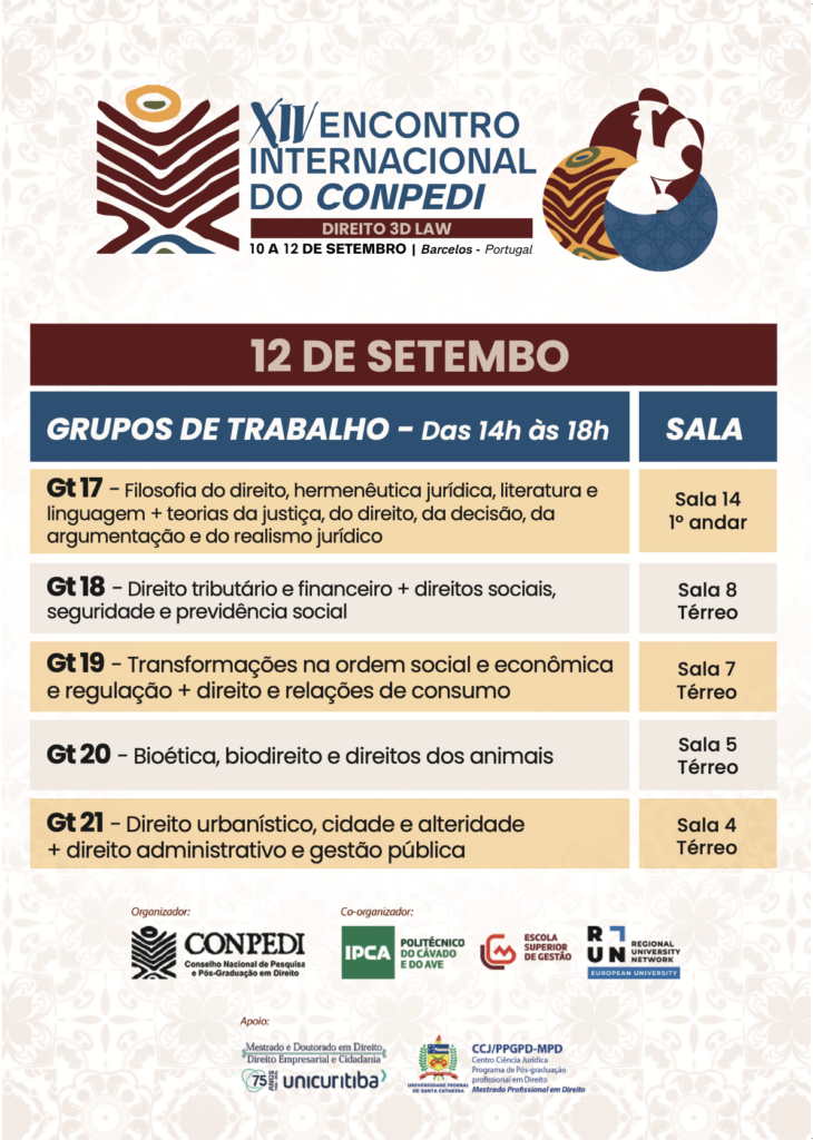 10, 11 e 12 de Setembro – XIV ENCONTRO INTERNACIONAL DO CONPEDI EM BARCELOS