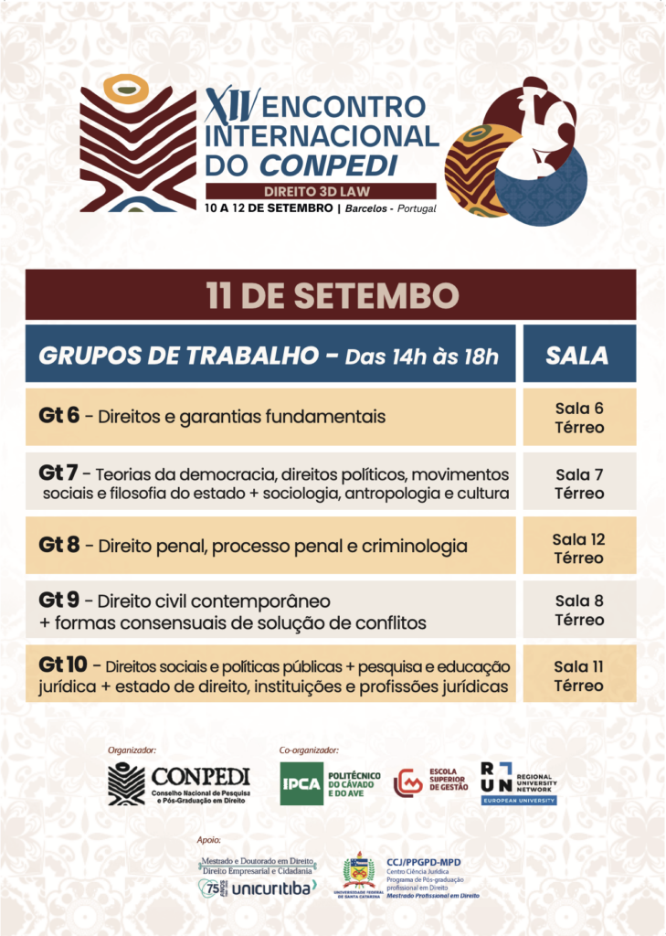 O Conselho Nacional de Pesquisa e Pós-graduação em Direito (CONPEDI) reafirma, mais uma vez, seu compromisso com a internacionalização e a valorização da produção acadêmica brasileira em Direito, promovendo o XIV Encontro Internacional do CONPEDI, que acontecerá entre os dias 10, 11 e 12 de setembro na encantadora cidade de Barcelos, Portugal.